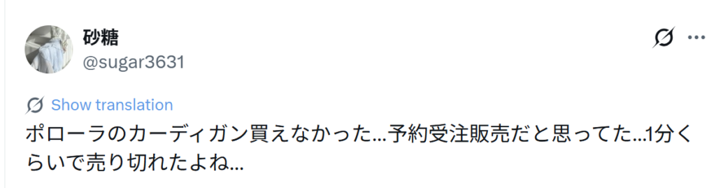 「人気すぎて、発売開始の数分で完売してしまう。買えないストレスがある。」という声が多くありますね。