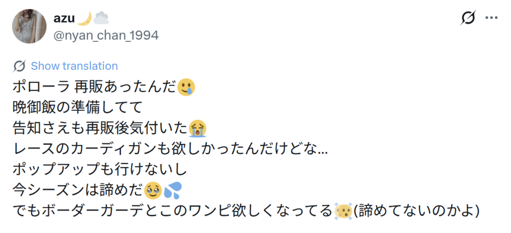 再販を楽しみにしていた方が多く、欲しくても買えなかったという声が圧倒的に多いです…!販売時間に合わせて待機が必要なくらい人気なブランドです。