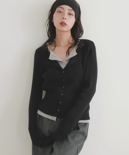 レイヤードバイカラークルーネックカーディガン