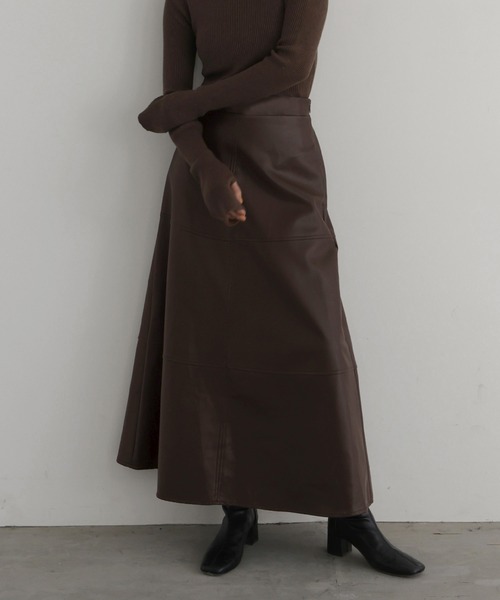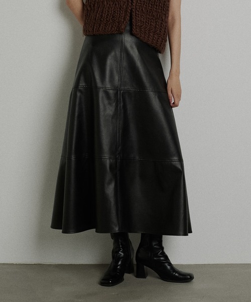 フェイクレザーフレアスカート